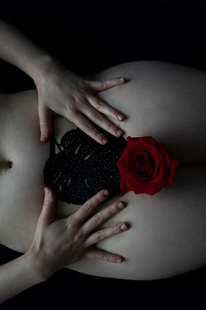 Eve theme, a fig leaf and a rose.